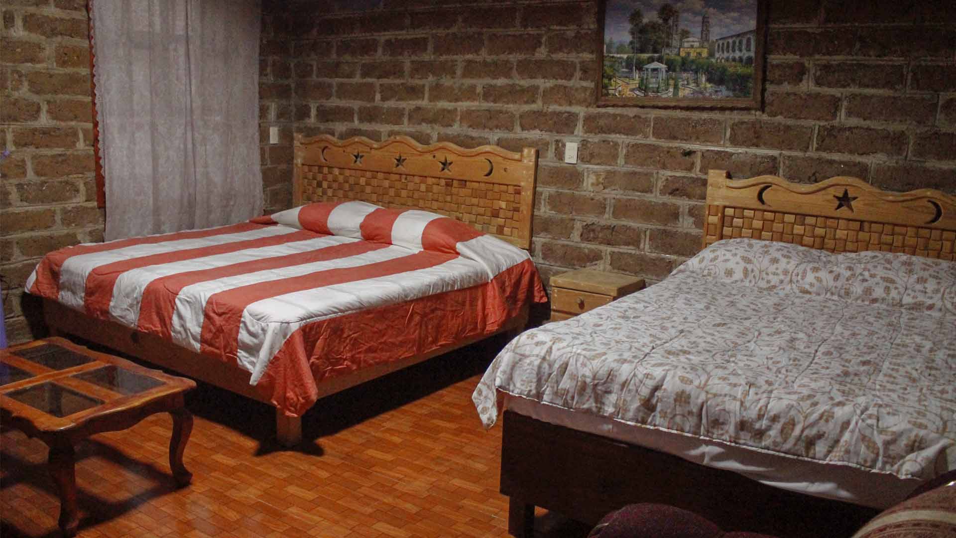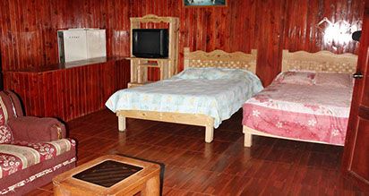 Nuestras cabañas cuentan con habitaciones con camas matrimoniales, sala, chimenea y cocineta.